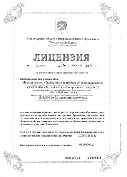 | Полное наименование образовательной организации* | Муниципальное бюджетное дошкольное образовательное учреждение «Детский сад комбинированного вида № 32 «Аленький цветочек» |