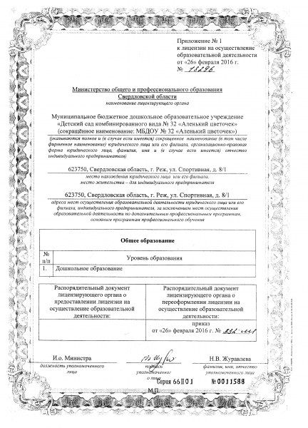 | Адрес местонахождения образовательной организации* | 623750, Свердловская область, г. Реж, ул. Спортивная, д. 8, кор.1 |